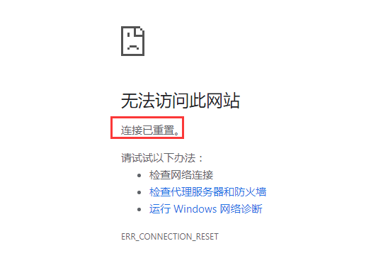 1:用谷歌瀏覽器進(jìn)行訪問(wèn),如果頁(yè)面出現(xiàn)提示:“鏈接已重置”,基本可以斷定是被墻。