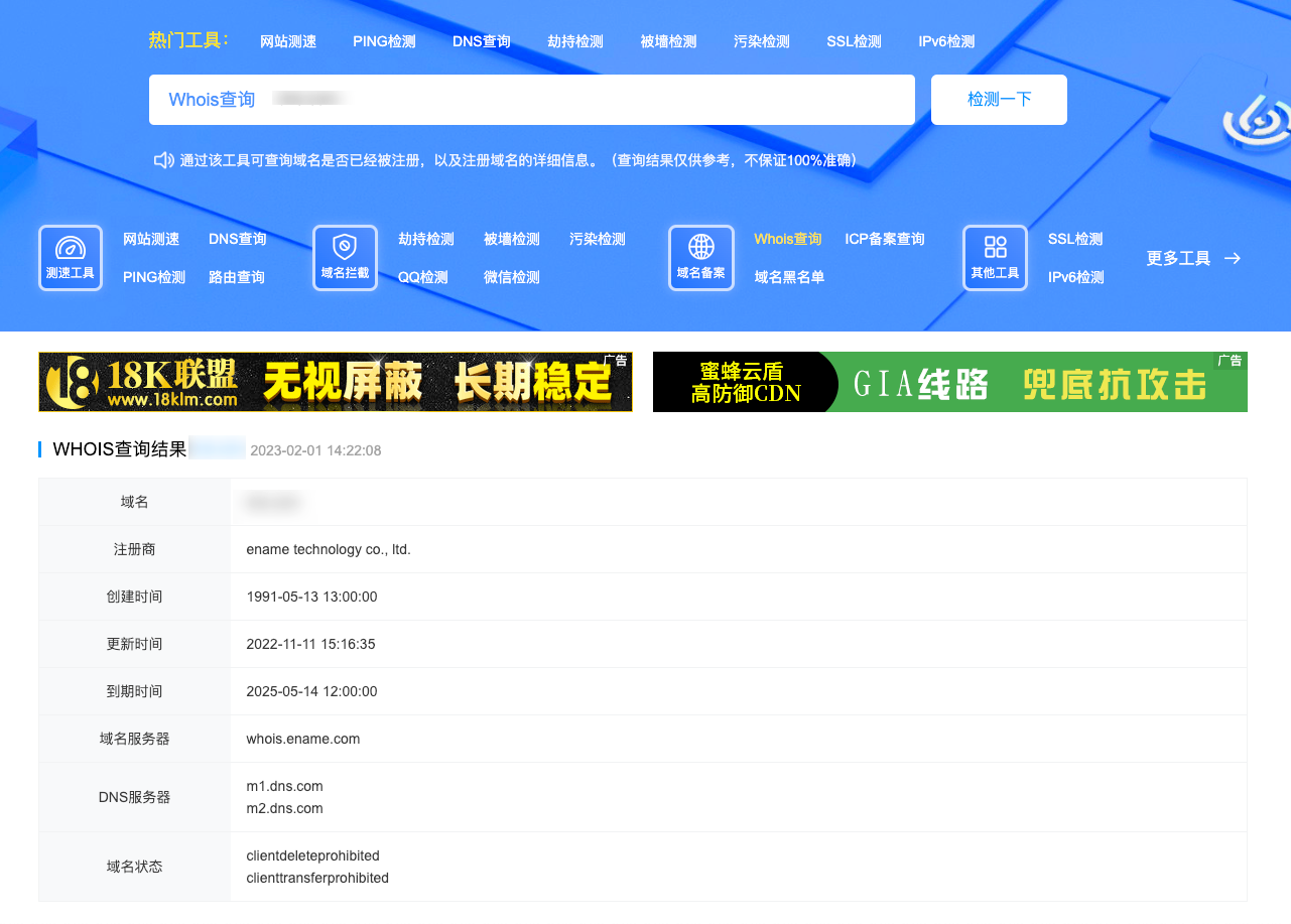 以撥測域名whois查詢工具為例,域名whois主要能夠查詢到以下信息: