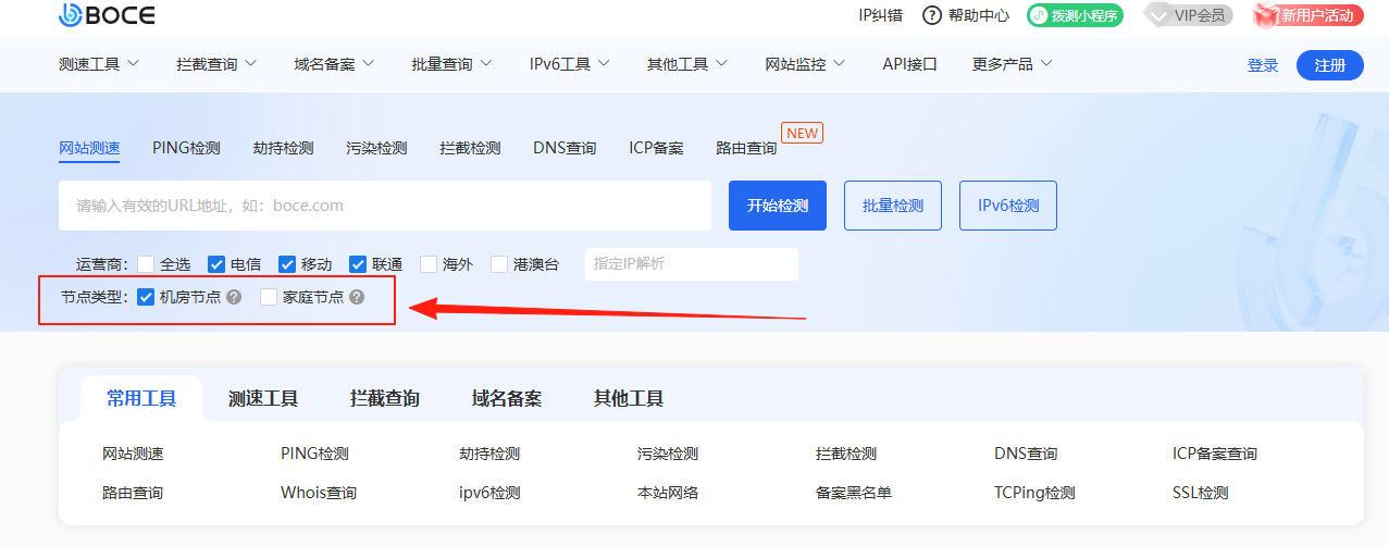 1、檢測工具(網(wǎng)站測速、PING檢測、TCPing檢測、DNS查詢)